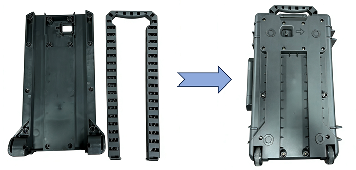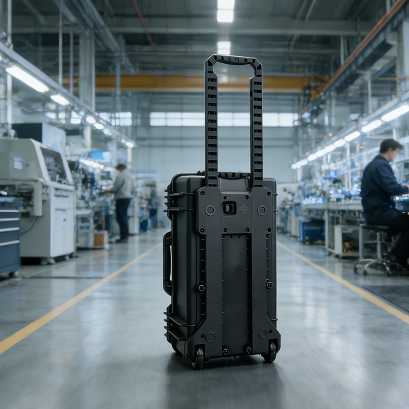 Q1: A alça e as rodas desta mala são confiáveis quando totalmente embaladas com ferramentas pesadas? A1: Absolutamente. Este sistema de mobilidade foi projetado para uso profissional pesado, não apenas para uma mala de viagem normal. A alça é feita de material PP espesso com dobradiças reforçadas; as rodas usam rolamentos industriais de alta carga e borracha resistente ao desgaste. Todo o sistema foi submetido a testes de fadiga de carga dinâmica que excederam em muito a intensidade do uso diário durante a fase de projeto, garantindo que ele possa suportar a carga máxima recomendada por longos períodos.