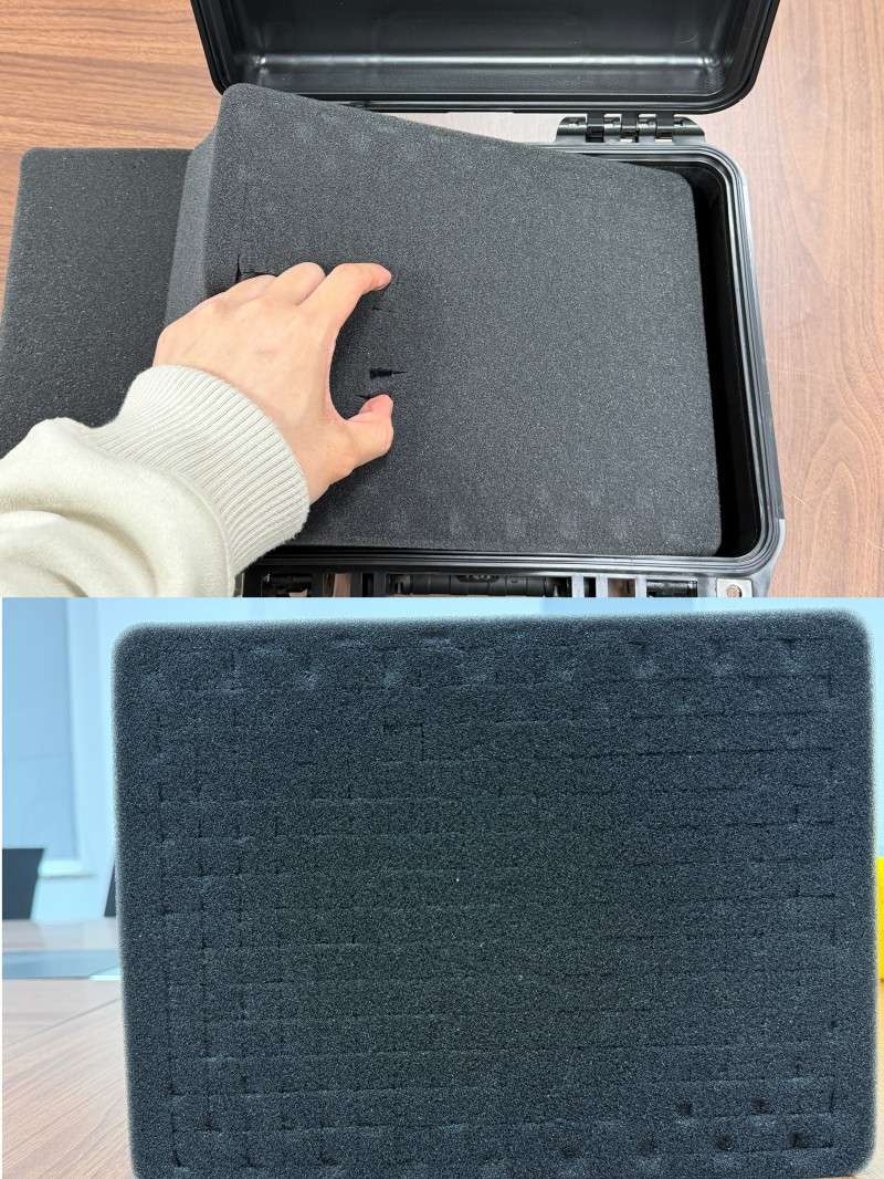 • Soluções internas personalizadas Oferecemos uma variedade de opções de configuração interna: Esponja de amortecimento padrão: Cobertura superior com espuma ondulada de casca de ovo, cobertura inferior com espuma xadrez rasgada à mão Esponja EVA personalizada: cortada com precisão no formato do equipamento para um ajuste perfeito Sistema de Divisória Ajustável: Ajuste flexível do espaço interno para se adaptar a diferentes combinações de equipamentos